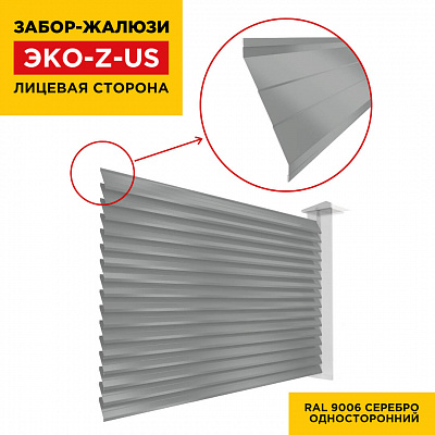 Ламель металлическая Z-образная усиленная ЭКО-Z-US, цвет RAL 9006 Серебро, длина любая кратно 1см под заказ - для забора-жалюзи, беседки, перголы в Тюмени